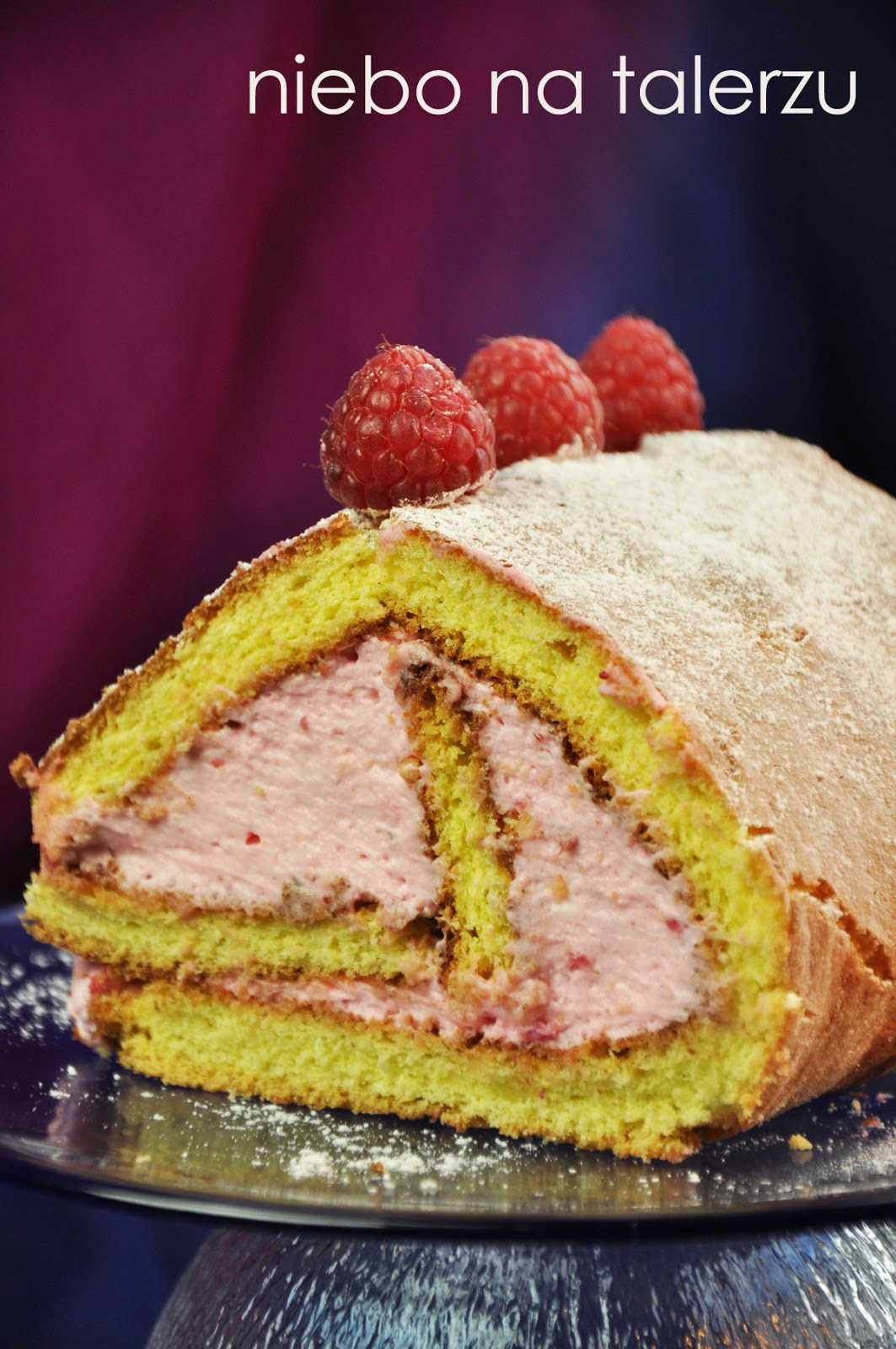 Żeby wyszła modelowo jak u Olgi Smile, trzeba pamietać o paru rzeczach. Śmietana powinna być przed ubiciem mocno schłodzona w lodówce, cukier dodany pod koniec ubijania, ilość składników taka sama jak w przepisie, a podczas zwijania nic nie może nam przeszkadzać. Rolowanie bowiem nie może sobie poczekać. U mnie przerwę wymusił LISTONOSZ. Ciasto zdążyło lekko przestygnąć i popękało. Roladę taką robiłam wiele razy z różnymi dodatkami. Piękniejsze zdjęcie wykonam następnym razem, zamknę drzwi i wyłączę dzwonek. Tym razem kupiłam malutką porcję hiszpańskich malin. Okazały się bardzo aromatyczne i ich smak jest bardzo wyraźny.