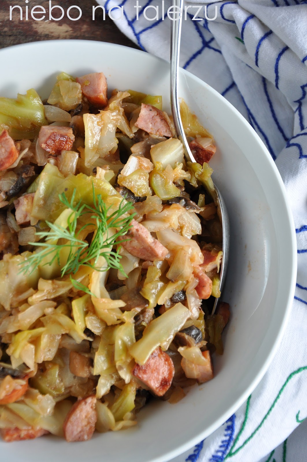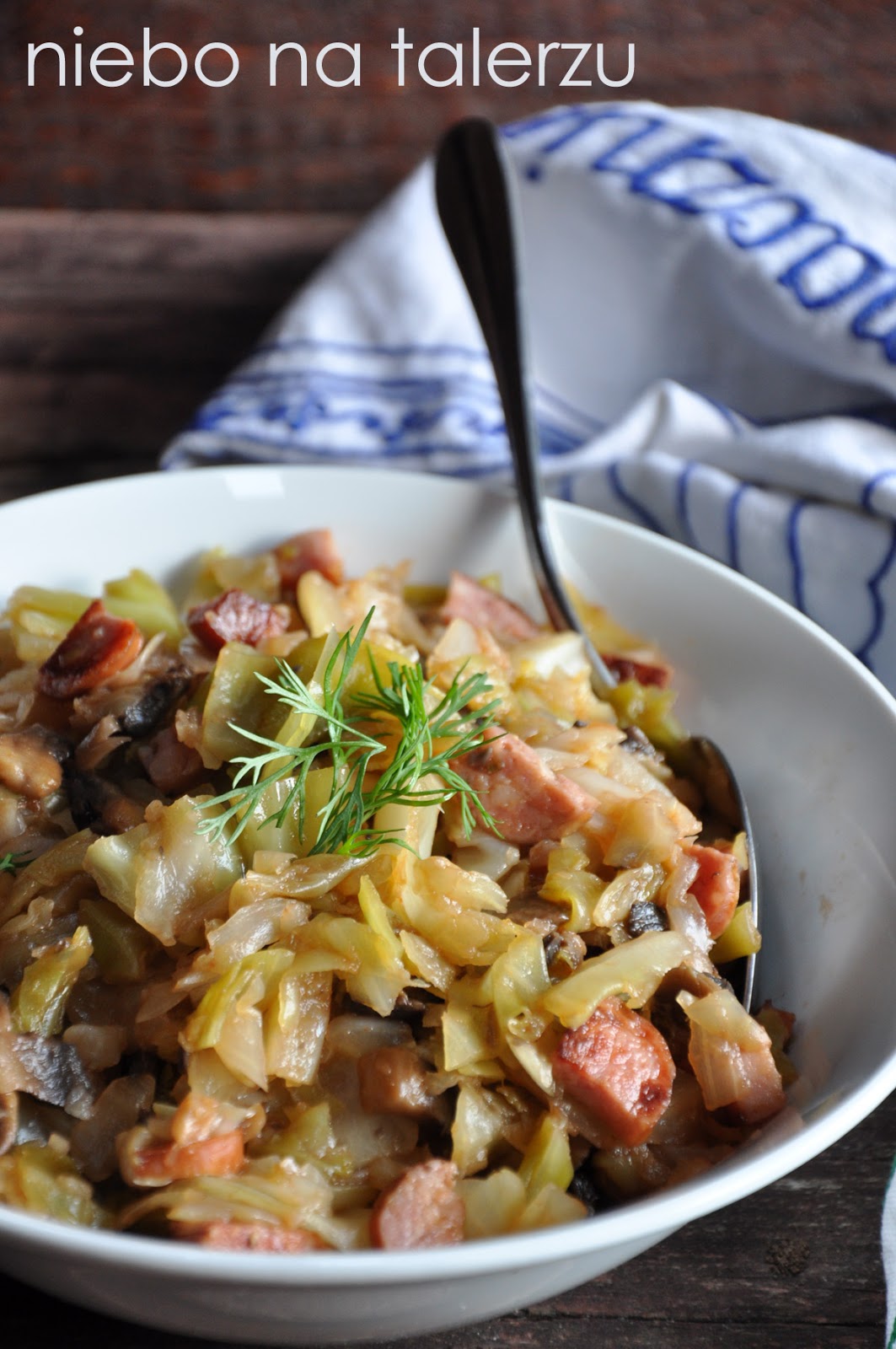 Inaczej – bigos z młodej kapusty. Pan sprzedawca z warzywniaka zażartował kiedyś, że kupuję, bo “co dwie głowy to nie jedna”. Zastanawiałam się czy mam wystarczającą ilość dystansu do siebie. No może mam, bo w sklepiku dalej bywam:) W rodzinie są dwa obozy – wybieraczy kapusty (to ja) i wyjadaczy mięsa (wszyscy pozostali). Sytuacja podobna do tej, kiedy na stole pojawiają się gołąbki. Póki co – gotowanie młodej kapusty to kwestia kilkunastu minut, można zaliczyć danie do serii szybkich, łatwych i jednogarnkowych. I możliwych do jedzenia przez kolejnych kilka dni, bo podobnie jak tradycyjny bigos, nabiera głębi smaku z każdym kolejnym. A. Taki prosto z lodówki – też lubię 🙂