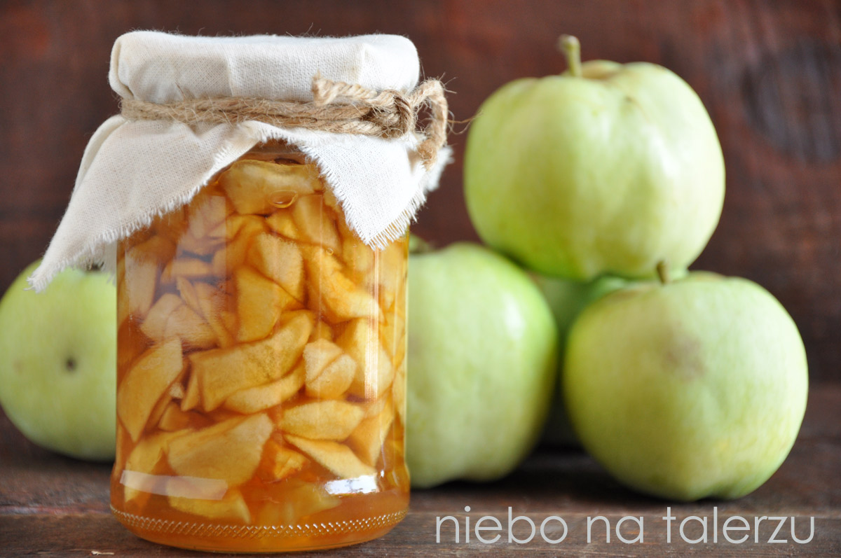 Śmiało mogę tak napisać, wszyscy moi przyjaciele potwierdzą, że inne są może dobre, ale te – najlepsze. Kawałeczki jabłka są chrupiące, nie rozpadają się, smakują jakby były dopiero co zerwane z drzewa. Przepis znalazłam na portalu Wielkie Żarcie pod nazwą “jabłka w karmelu” kilka lat temu i spróbowałam, widząc bardzo pozytywne komentarze pod wpisem. Od tego czasu nie robię już innych, szarlotka z tych, nie ma sobie równych, naprawdę. Wykorzystuję je do deserów i ciast, niektóre są na blogu np. tu, tu, tutaj i tam :). Świetnie smakują z twarożkiem i z lodami, pycha. Używam twardych antonówek, zanim całkowicie dojrzeją są najlepsze. Myślę, że każda twarda odmiana jabłek da podobny efekt. Bardzo namawiam do ich zrobienia.