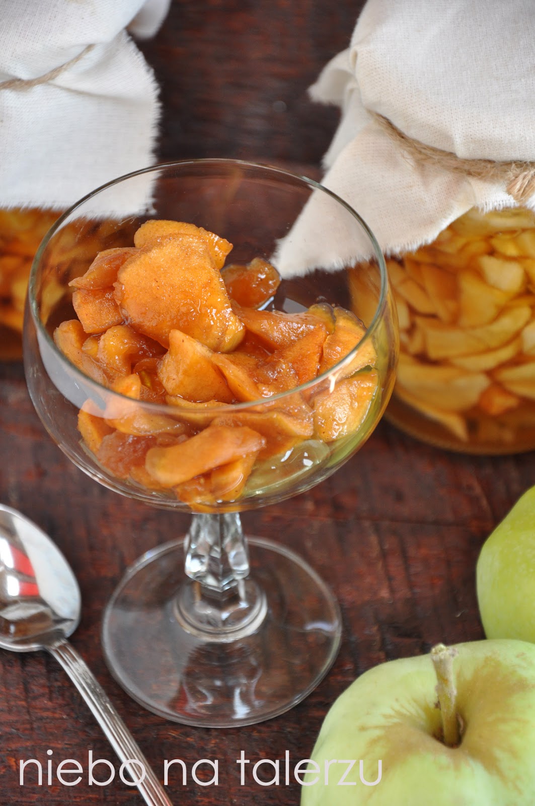 Zrobiłam te jabłka, ale niestety nie wystarczyło mi syropu na zalanie wszystkich słoików:(