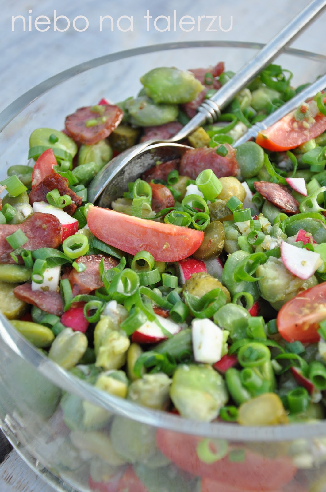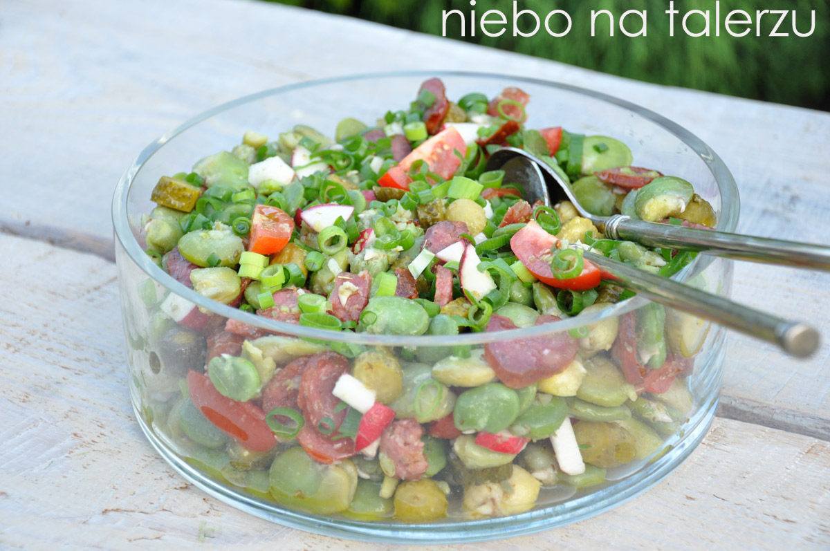 Sałatka z bobu, kolorowa, świeża, pożywna, pyszna.
