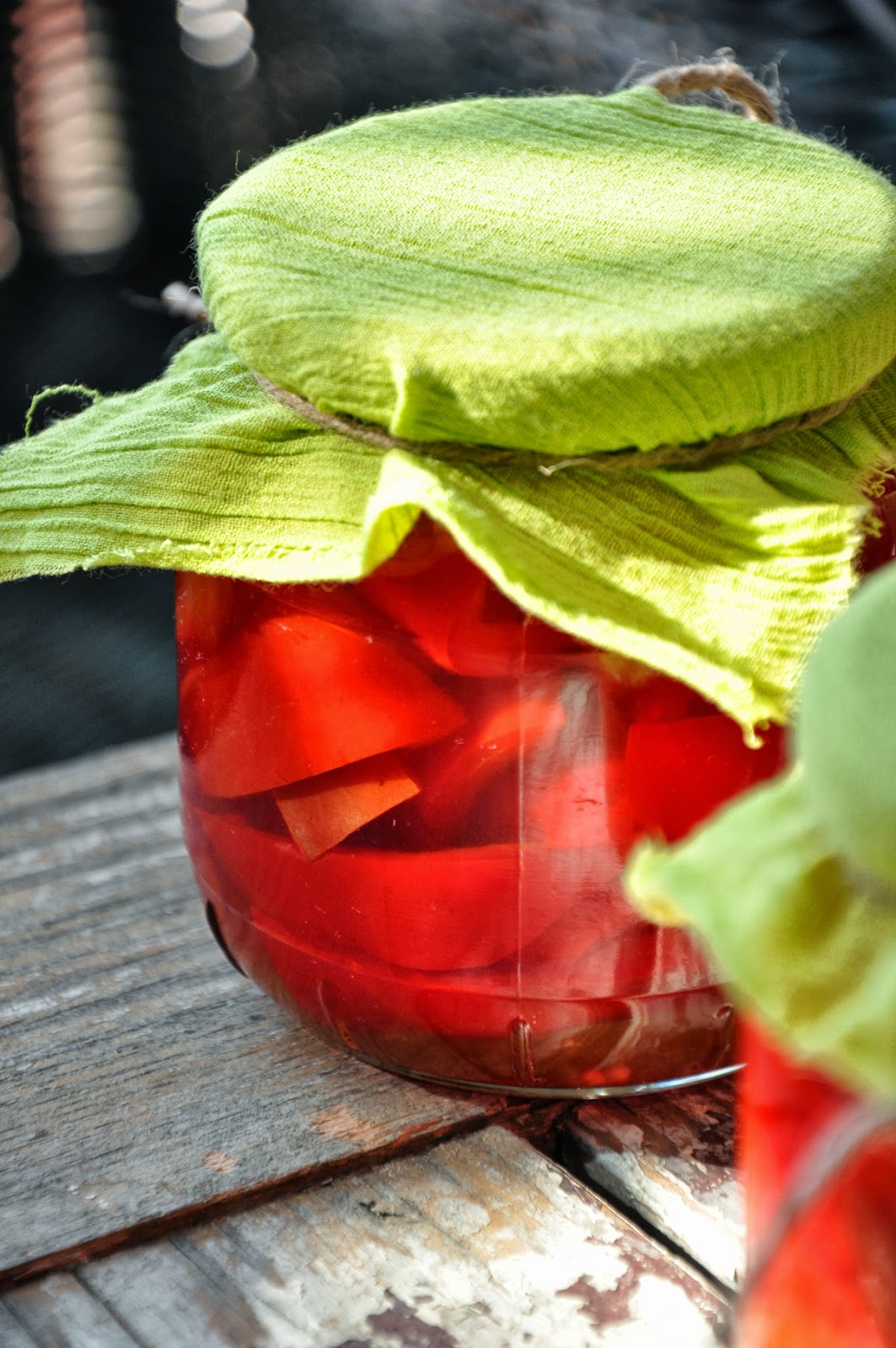 Zalewa musi być wrząca i to wystarczy, żeby słoiki zamknęły się bez pasteryzowania. Używam tych ćwierć i półlitrowych. Szybka, bardzo smaczna i kolorowa, paprykowa słoikowość. Jest teraz najtańsza w sezonie. Warto iść na targ warzywny choćby po to, by ponatychać się widokiem jej kolorów. Przepis na lecso jest tu, jeśli ktoś nie zdążył tego lata, polecam gorąco:)