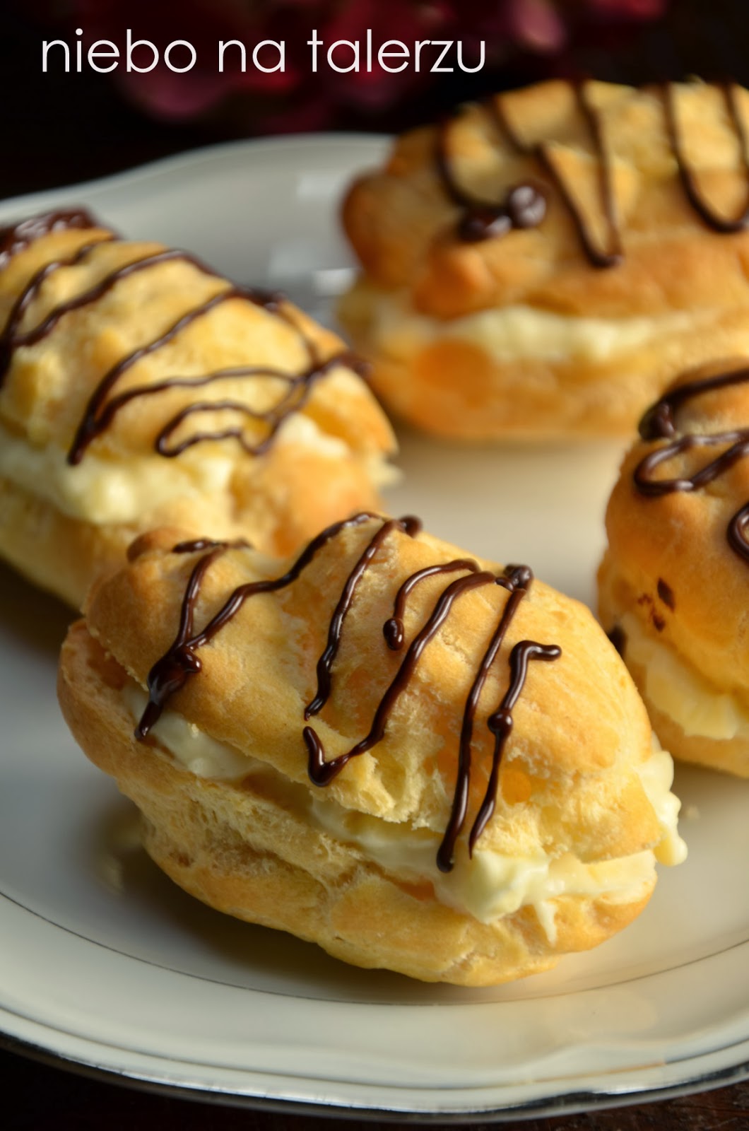 Eklerki, ptysie, profiterolki z kremem waniliowym