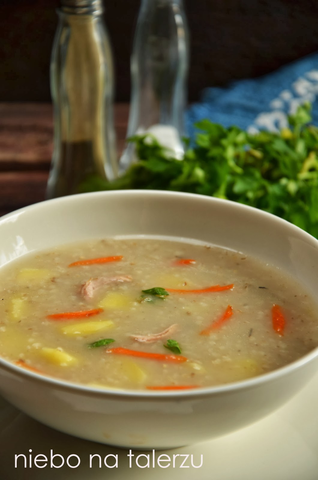 krupnik ma być na krupach jęczmiennych rzadki,a ten przepis zastosowałabym do kaszy z ziemniakami