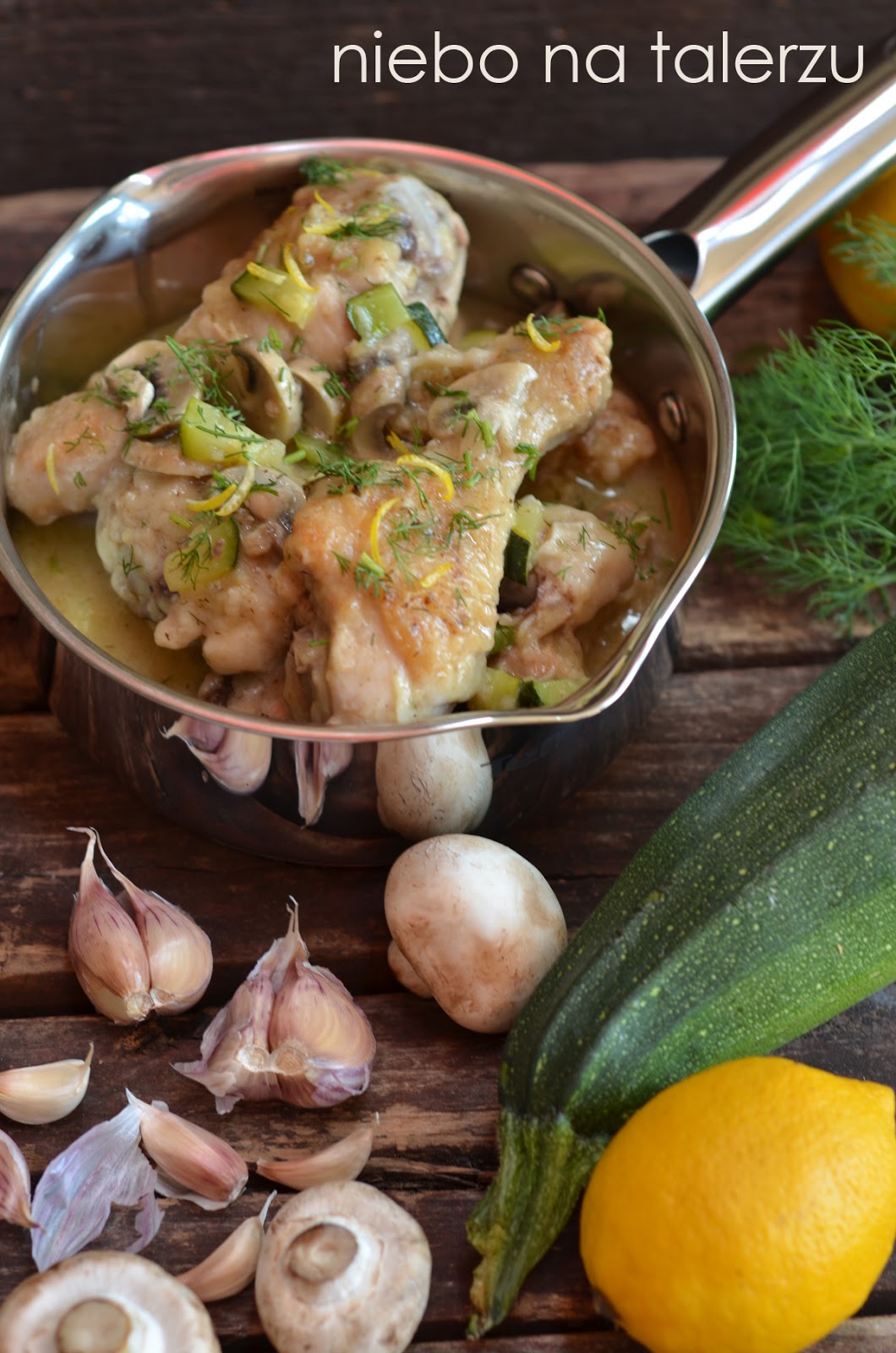 Kurczak w cytrynowym sosie. Łatwy kurczak z cukinią i pieczarkami