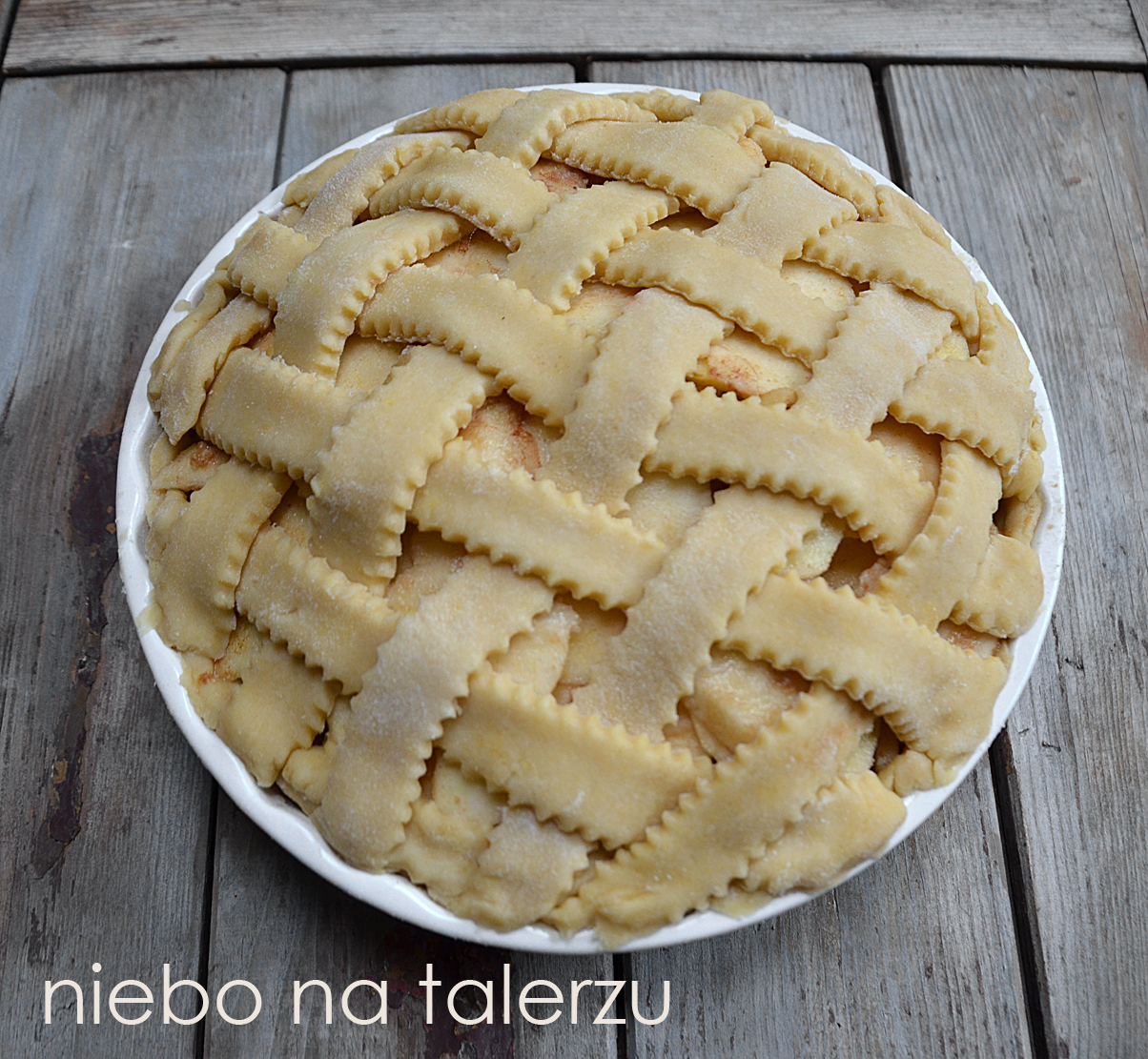 Szarlotka amerykańska zwana oryginalnie apple pie, od tych naszych, babcinych różni się nieco kształtem. Bo zdaje się, że babcie pieką polskie jabłeczniki najczęściej w prostokątnych formach. W ameryce natomiast, jabłkowe ciasto zazwyczaj przybiera kształt okrągły. Można wykorzystać formę do tarty lub tortownicę. Samo ciasto, od tych naszych najlepszych jest nieco mniej kruche. Ale subtelne i niewielkie różnice w delikatności wyczuje tylko doświadczony zjadacz szarlotkowy. I czy ona amerykańska czy polska, wyjedzona zostanie do ostatniego okruszka. I widocznie babcie amerykańskie miały podobną do naszych fantazję, kratka przecież wygląda zupełnie swojsko i znajomo:)