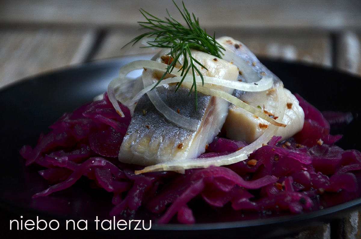 Jestem ze Śląska więc "modro" kapusta kojarzy mi się głównie jako dodatek do rolady 🙂 Ale chętnie bym się skusił na takiego śledzika 🙂 Rewelacja!