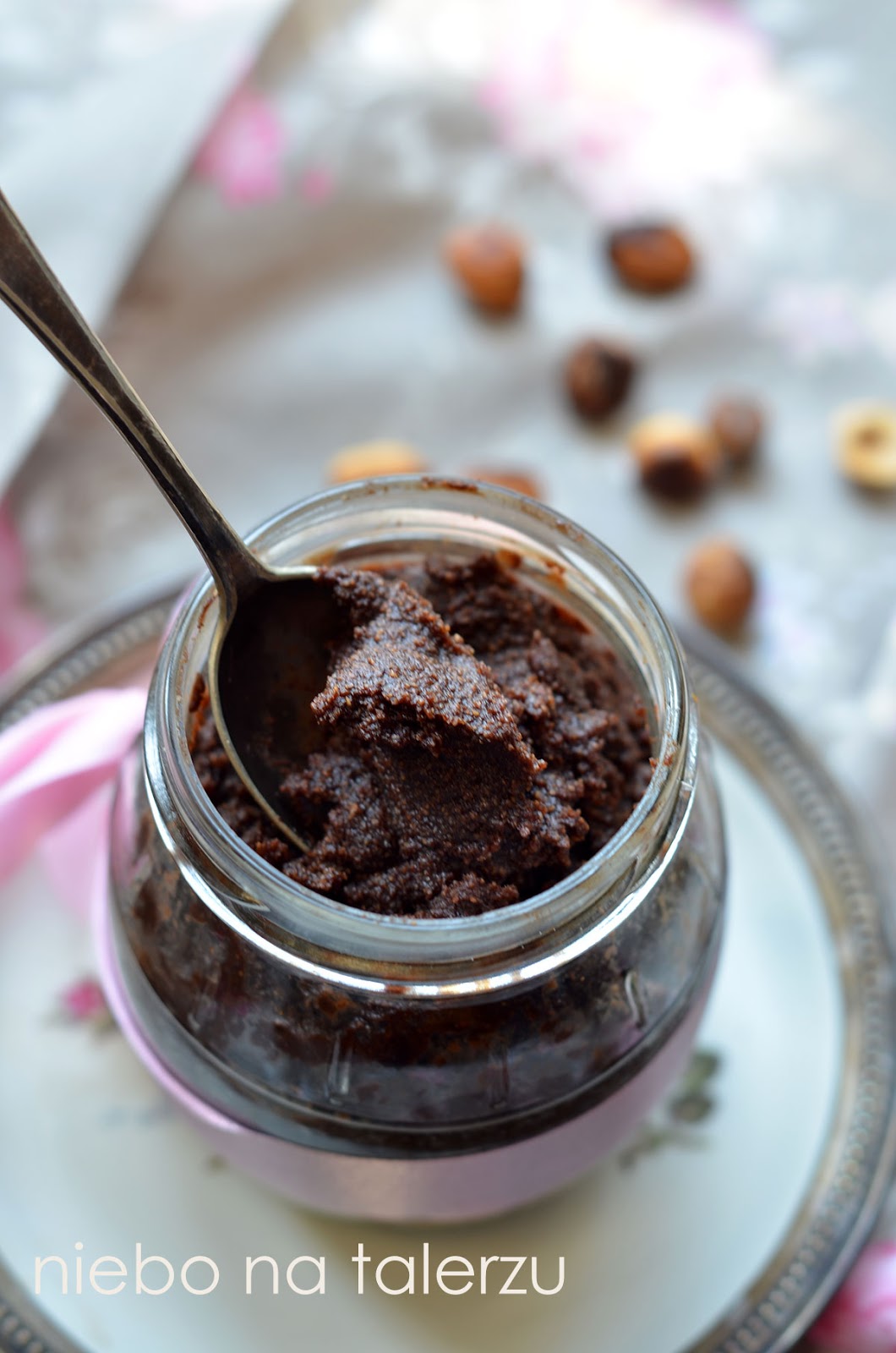 Domowa nutella, zdrowszy od sklepowego przysmak. Nie jest identyczny w smaku jak ten znany, przynajmniej nie tak jedwabisty i gładki. Mogą go wykonać posiadacze mocnych blenderów i Thermomixów, bo laskowe orzechy trzeba zamienić w możliwie najgładszą pastę. W oryginalnym kremie jest ich tylko 13%! No i tłuszcz, używają tam tłuszczu palmowego, ja nie.