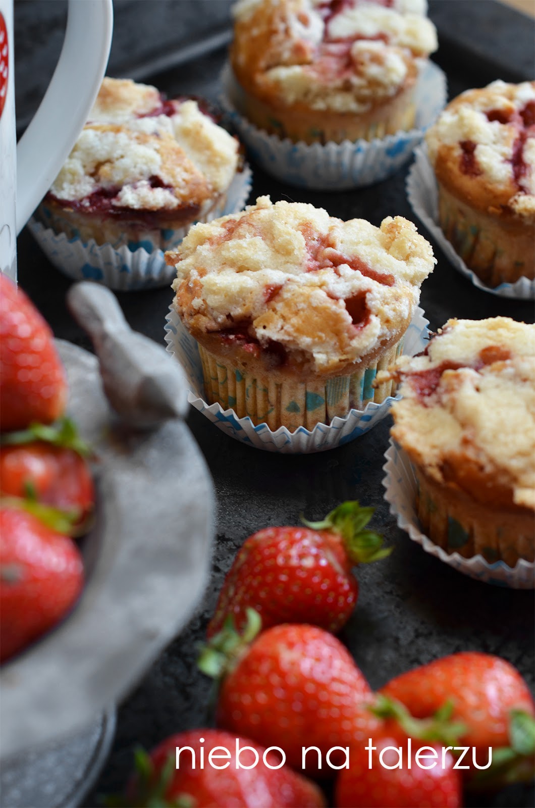 Muffinki z truskawkami. Jogurtowe muffinki z kruszonką