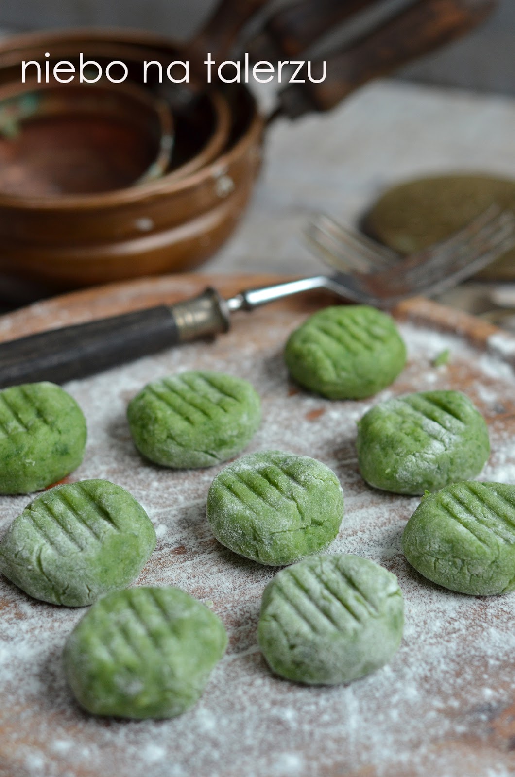 Miękkie, bardzo dobre kluski ziemniaczane ze szpinakiem do mięsnych i warzywnych sosów oraz zajadania solo (takie najbardziej lubię), mają dość wyraźnie wyczuwalny, szpinakowy smak.