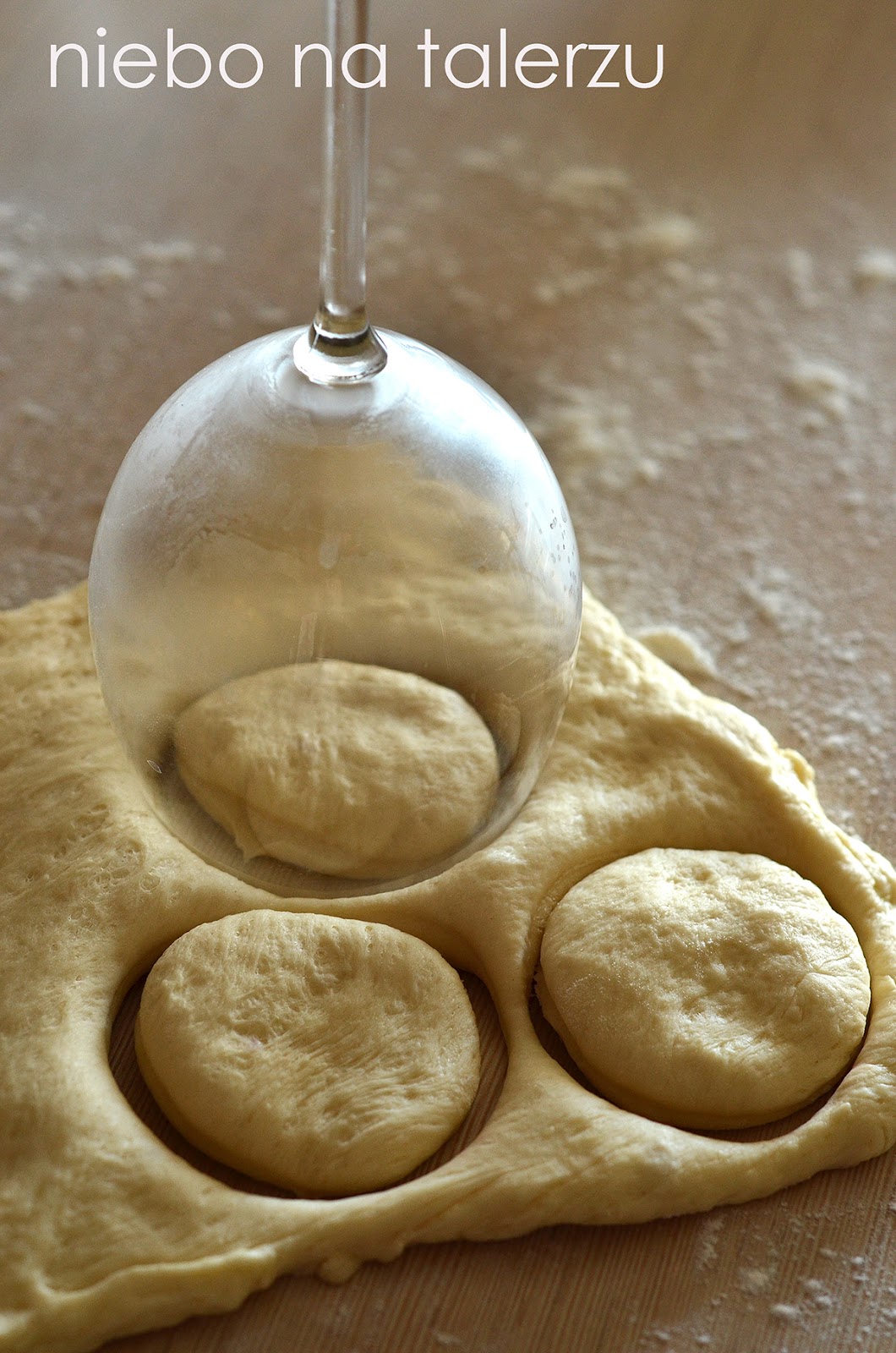 szklanką krążki. Formować z nich kulki zwijając brzegi pod spód, jak bułeczki czy pączki. Odłożyć na podsypanym mąką miejscu do lekkiego podrośnięcia, pod okryciem ze ściereczki.