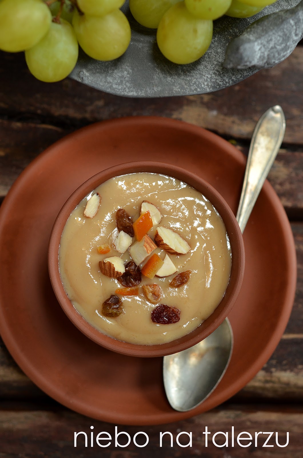 Domowy budyń karmelowy, bez dodatków polepszających oraz sztucznych aromatów, do zrobienia w kilka chwil. Bardzo rzadko zdarza mi się sięgnąć po sklepowy produkt z torebki, nawet budyniowe kremy do ciast czy eklerków przygotowuję tradycyjną metodą. Zazwyczaj wszystkie składniki łatwo znaleźć w kuchennych szafkach, z grubsza budyń to skrobia ziemniaczana i mleko, ot cała filozofia. I tak popołudniem, małej filiżanki/salaterki z karmelowym czy waniliowym specjałem z ulubionymi bakaliami – nie odmówię:)