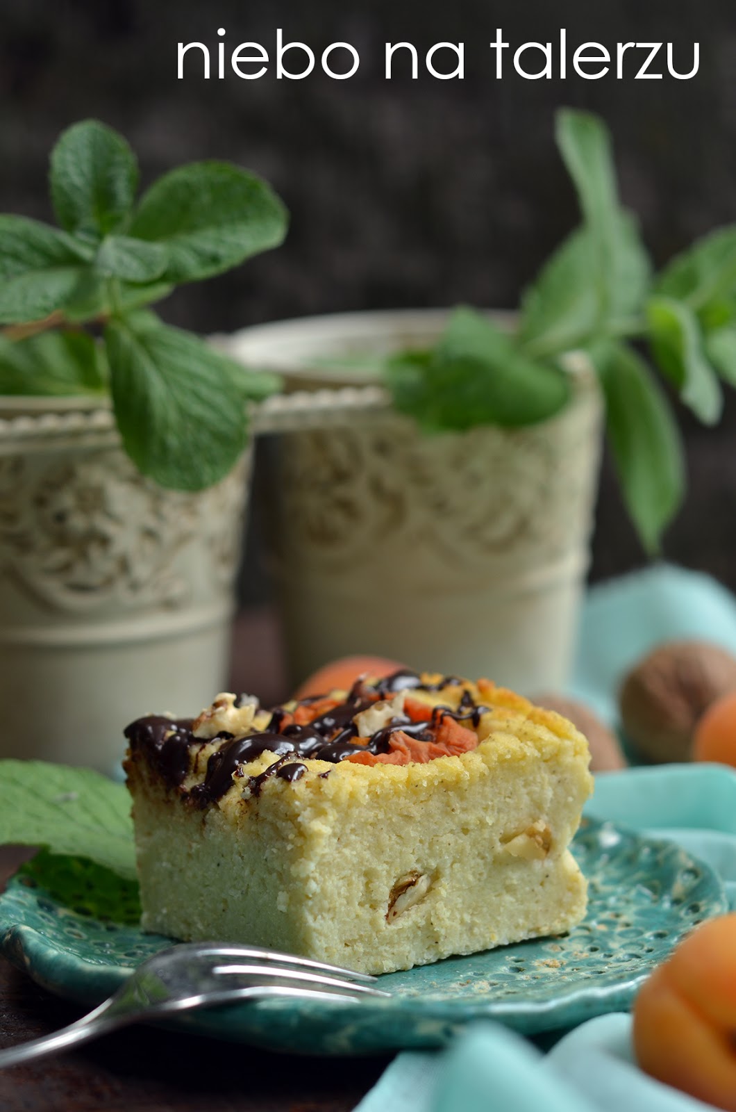 Ciasto z kaszy jaglanej z morelami. Zdrowe ciasto z owocami