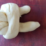 Wlać płynne składniki i wyrabiać ciasto ręcznie lub przy pomocy miksera z końcówkami w kształcie haka ok. 10 – 15 minut. Ciasto powinno być miękkie, mieć zwartą, elastyczną konsystencję. W razie potrzeby można dodać odrobinę więcej mąki – jeśli jest bardzo luźne lub mleka, jeśli wychodzi twarde.