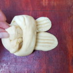 Z ciasta uformować koło, lekko rozwałkować i podzielić nożem, nożem do pizzy, radełkiem itp. na 4, 8 a następnie na 16 części. Jeśli chcemy uzyskać miniaturki – każdy kawałek jeszcze na pół. Na zdjęciu są widoczne duże bułeczki.