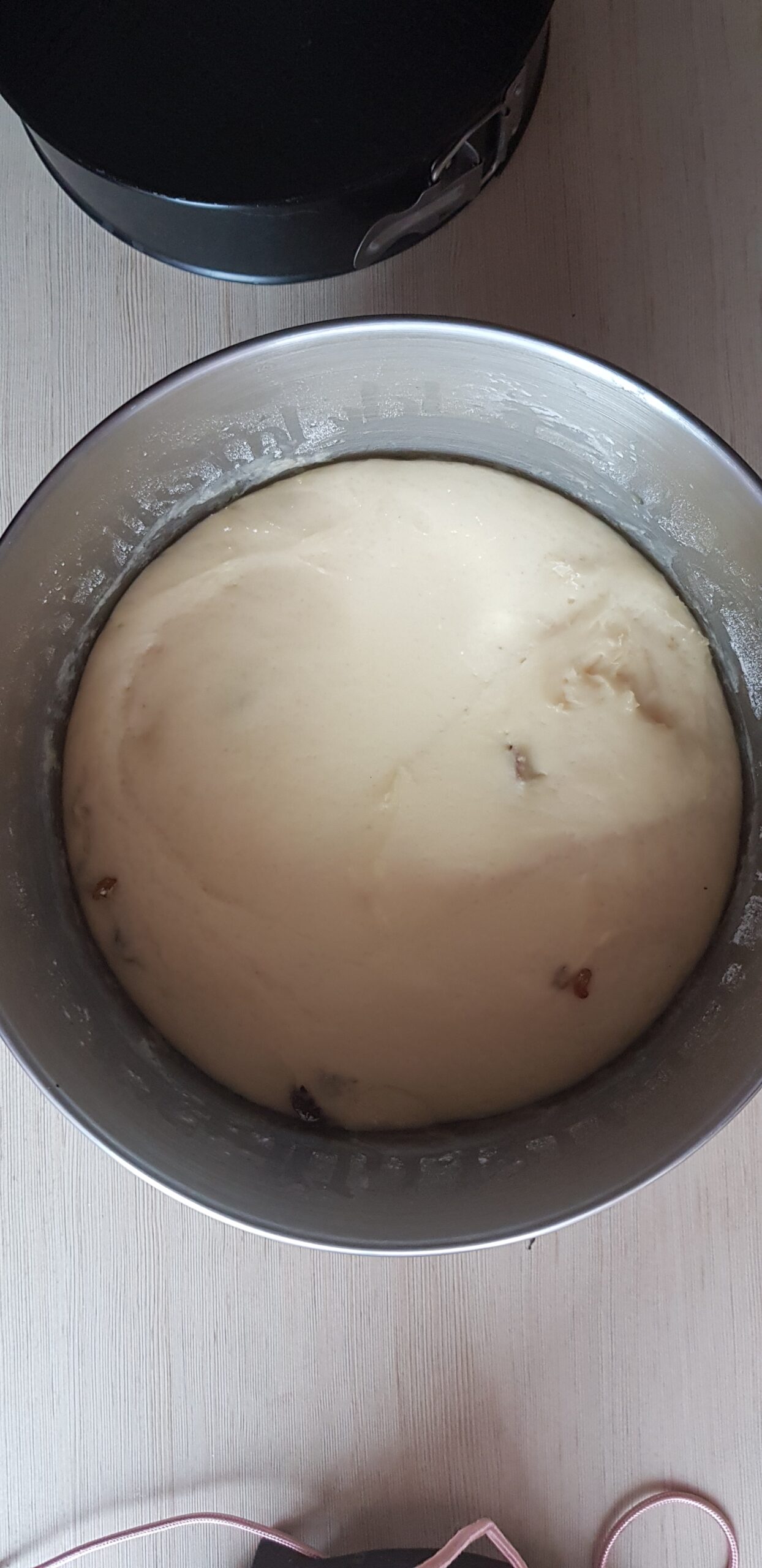Jeśli  po tym czasie ciasto bardzo się klei i jest bardzo rzadkie – dodać nieco mąki ale nie więcej niż 100 g. To rzadkie po upieczeniu będzie bardziej puszyste i miękkie.
