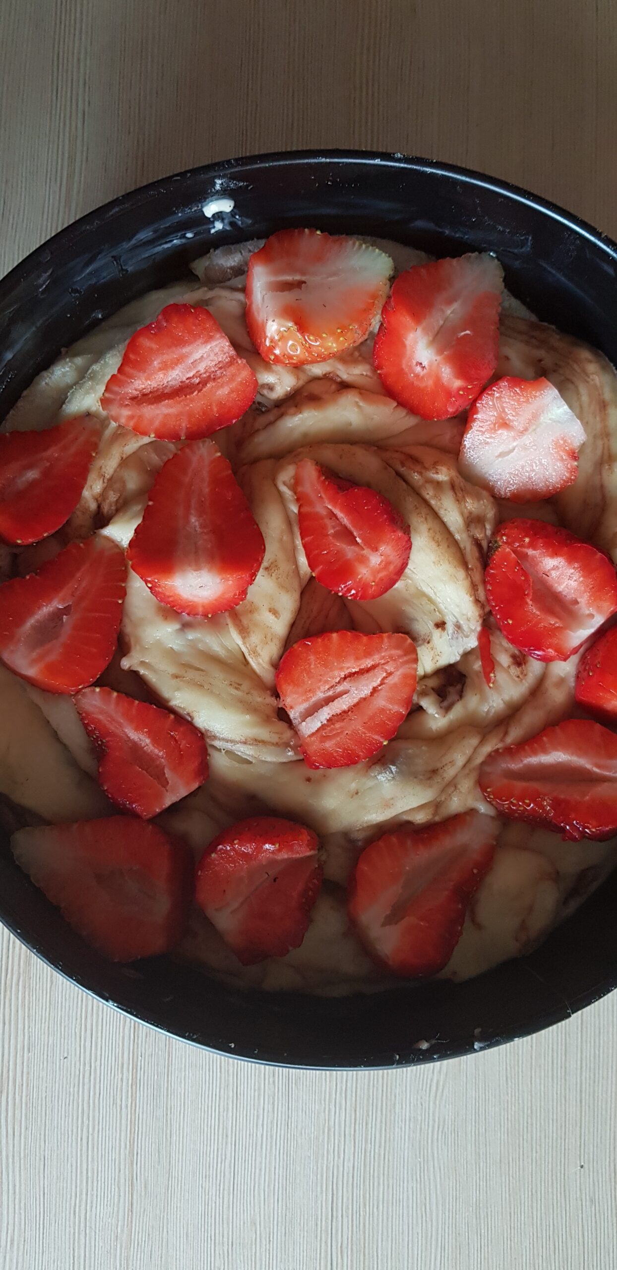 Ciasto drożdżowe z truskawkami – marmurkowe