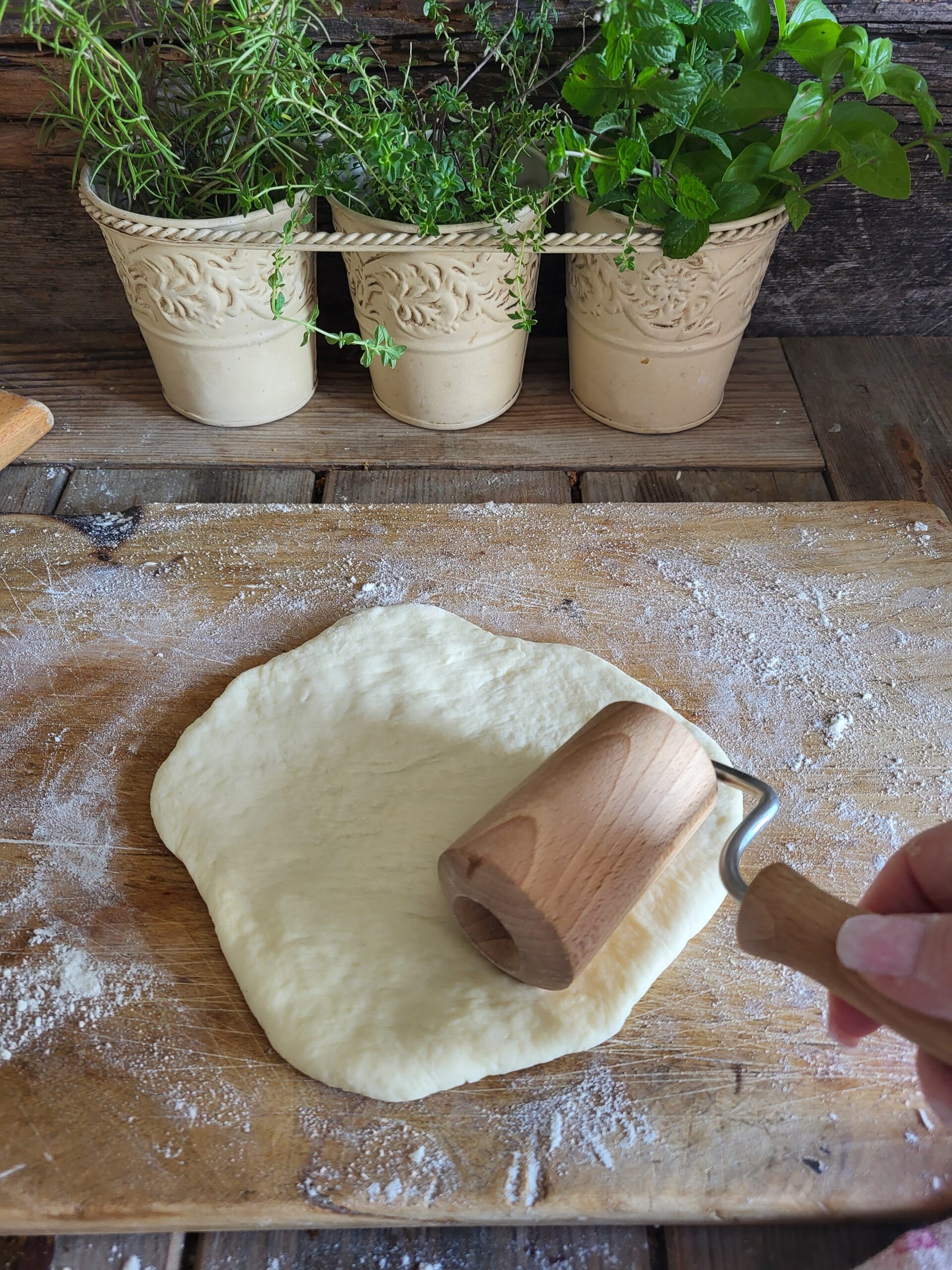 Umączonymi lub naoliwionymi dłońmi uformować z nich kulki, a następnie rozciągnąć je rękami na płaskie placuszki o średnicy ok. 15-18 cm.