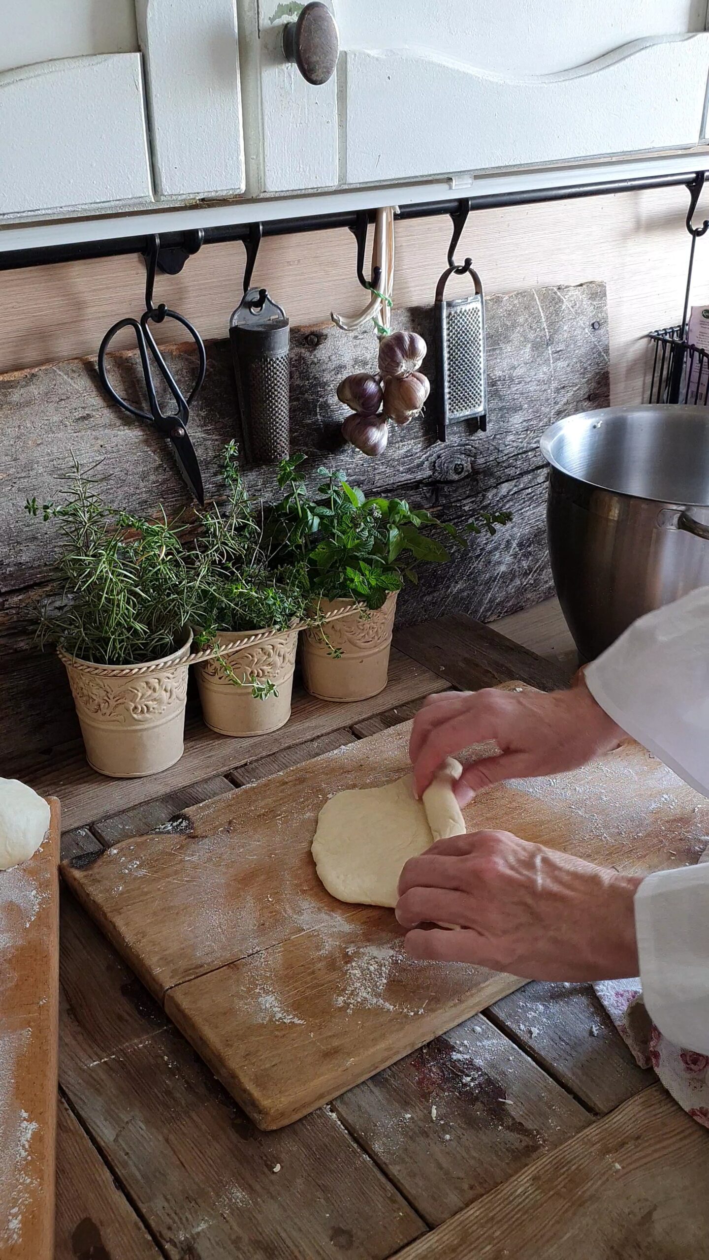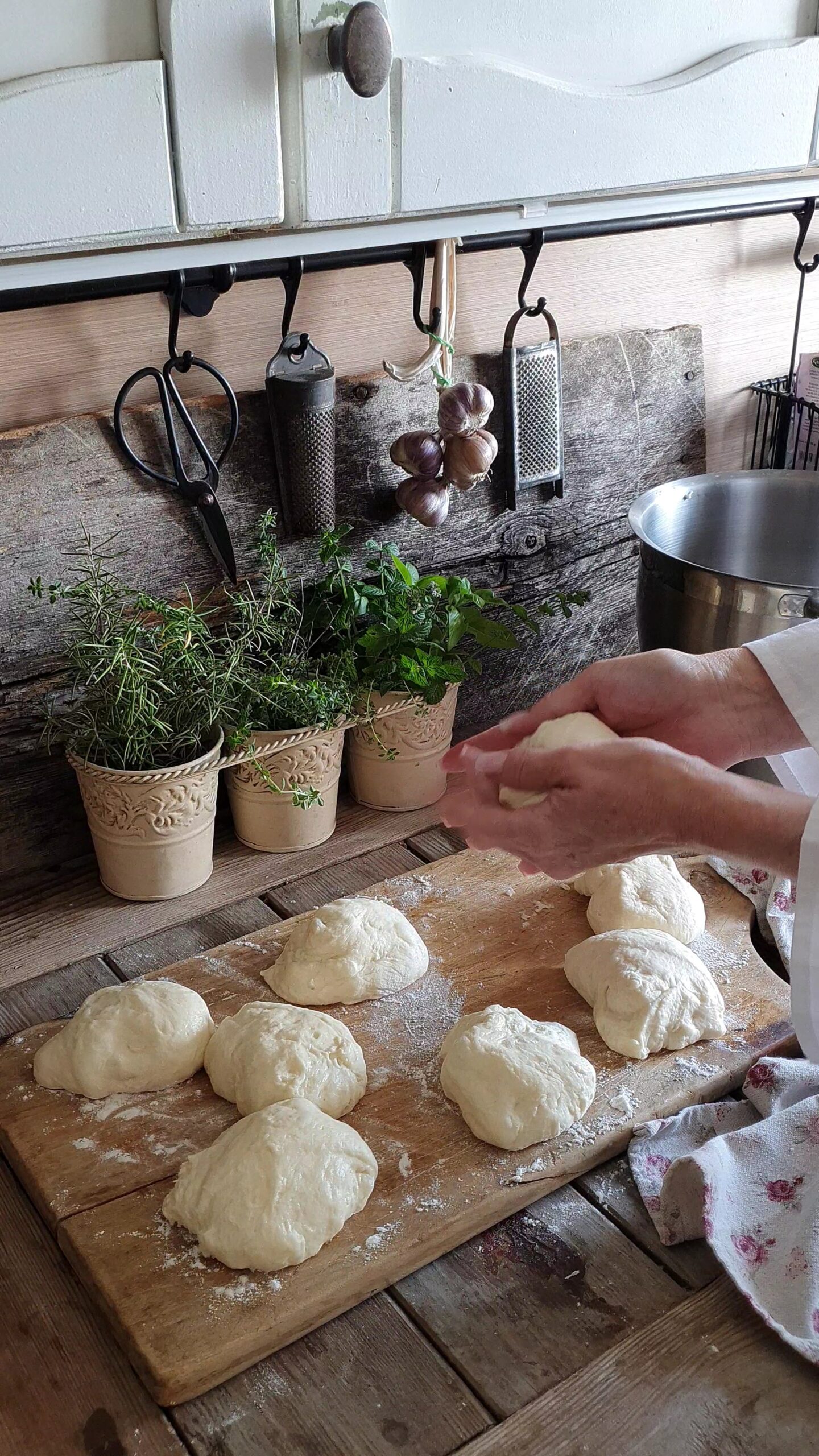 Po wyrośnięciu wyłożyć je na podsypany mąką blat i podzielić na 8 możliwie równych części.