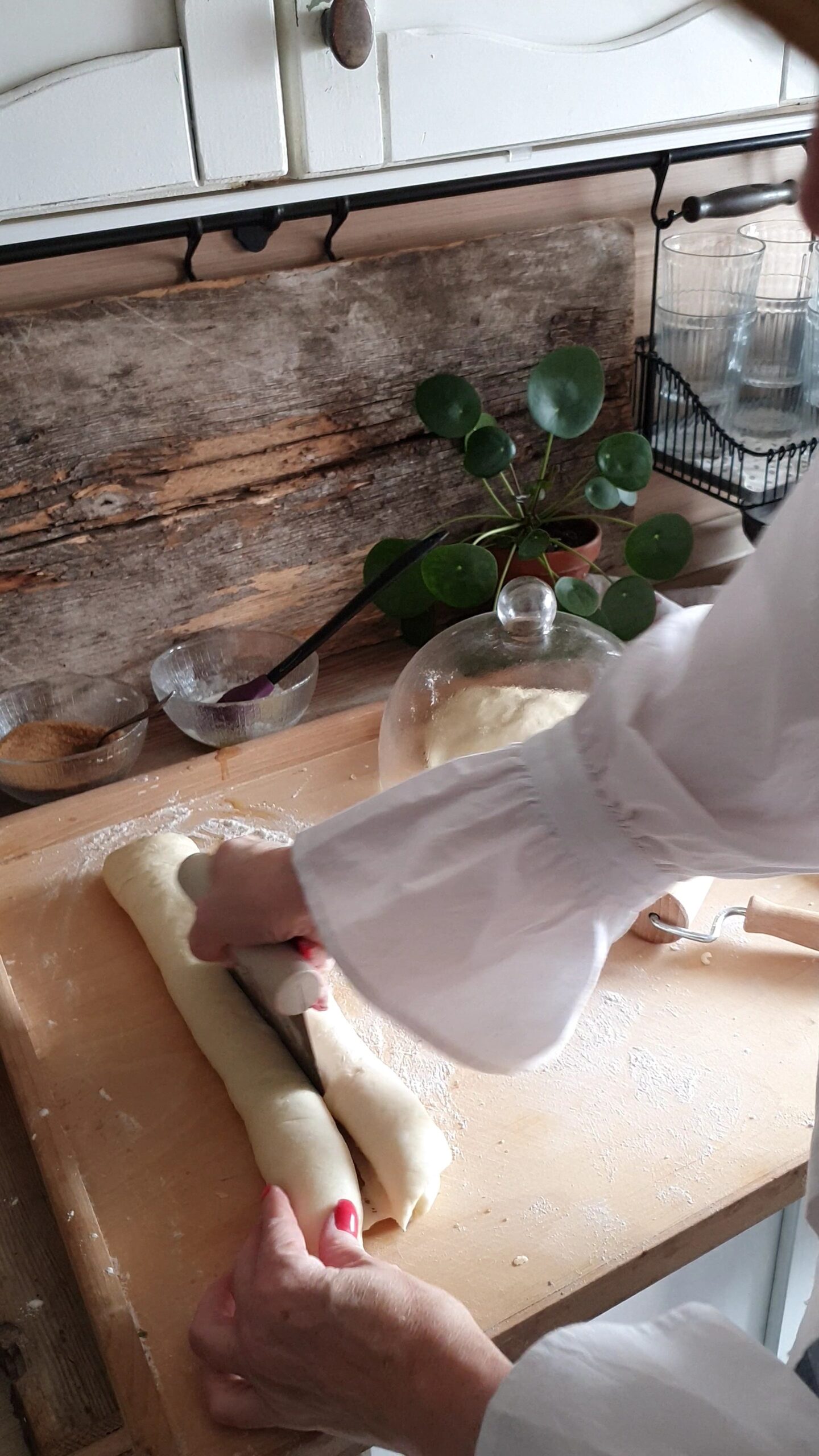 nadzienie – 50g stopionego masła, 3 łyżki cynamonu i 3 łyżki cukru (najlepiej ciemnego lub trzcinowego, ale biały też się nada)