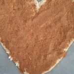 Na cieście rozłożyć punktowo masę i delikatnie rozprowadzić ją po powierzchni. Możliwie równo posypać wymieszanym z cukrem cynamonem.