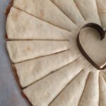 Nieco wyżej niż na środku ułożyć foremkę w kształcie serca lub kółka (szklanka/kubek) lub odcisnąć np. trzonkiem noża – kształt serca.