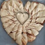 Z drugiego ciasta uformować placek i położyć na masie cynamonowej/serowej/makowej. Przy pomocy wałka nadać mu kształt serca.