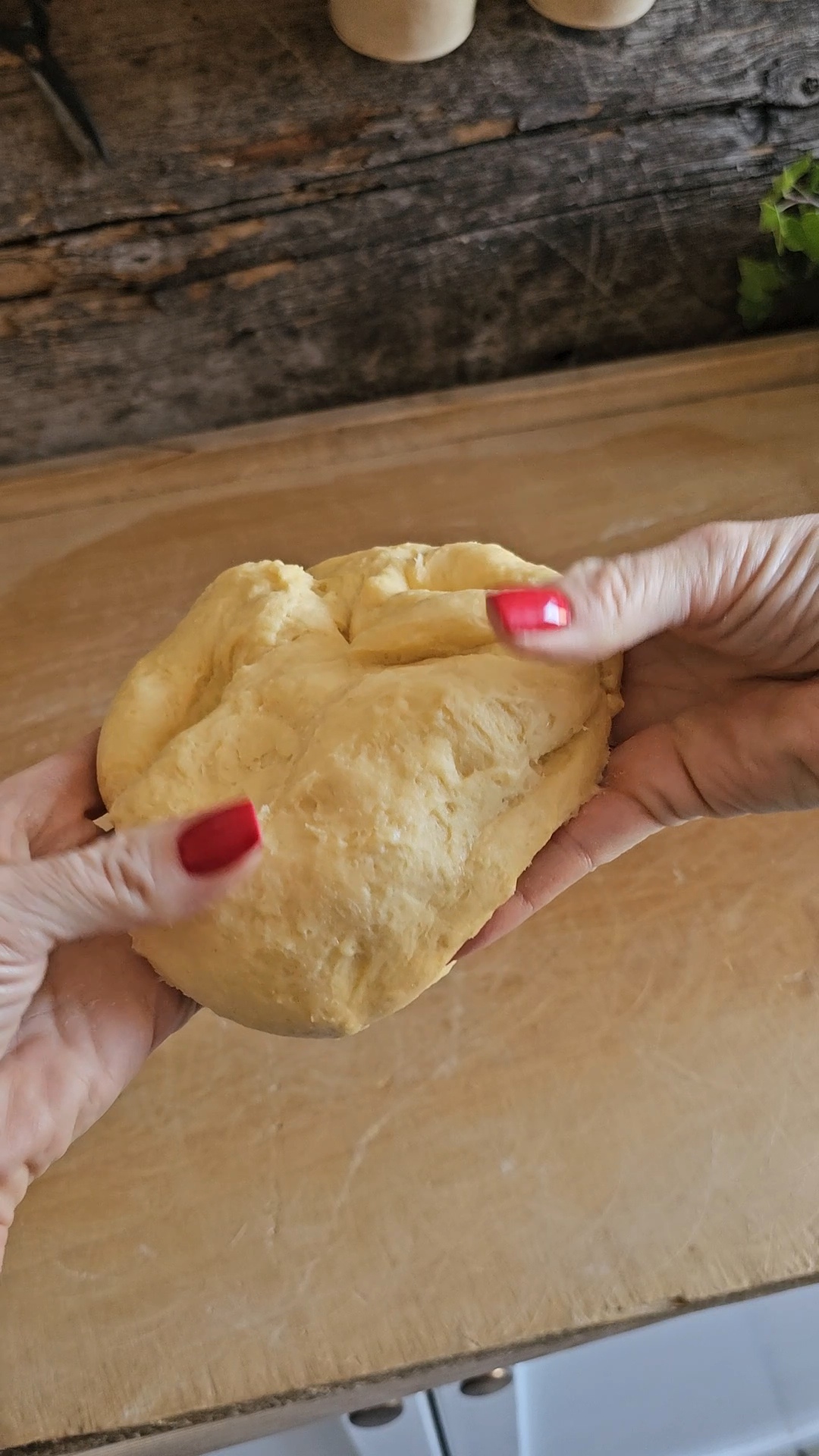 Ciasto powinno być elastyczne, miękkie jak plastelina, nie rzadkie. W razie potrzeby dodaj łyżkę śmietany dla rozrzedzenia lub odrobinę więcej mąki jeśli jest zbyt miękko.