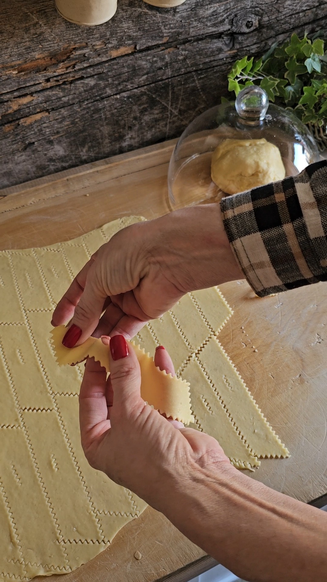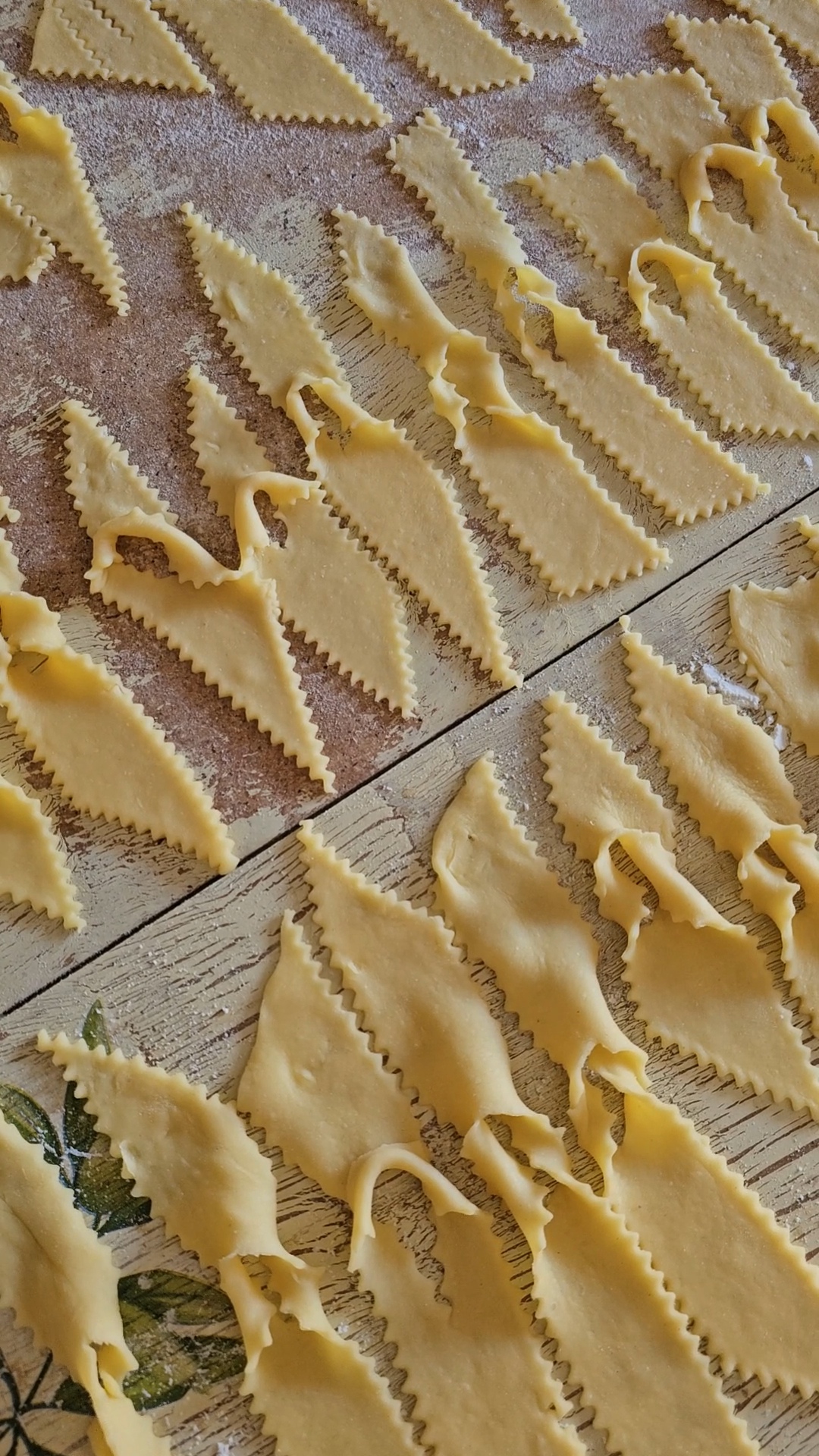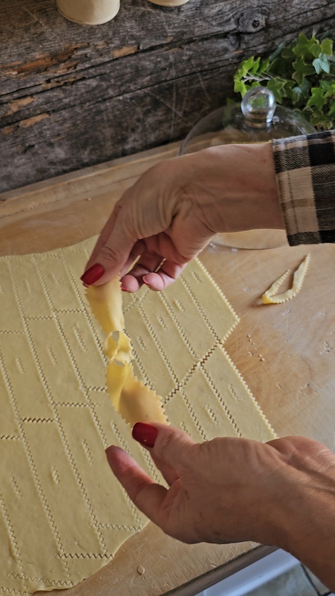 Jeśli chcesz mieć wzór w ząbki na brzegach – kup specjalne radełko. W internecie znajdziesz bez problemu. Wpisz w przeglądarkę – radełko do faworków. Bez ząbków da radę nóż do pizzy i zwykły, ostry nóż.