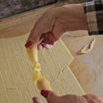 Pociąć krążek ciasta na paski szerokości 2.5 cm, długości ok. 10-12 cm.