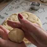 Każdą część kolejno spłaszczyć na placek grubości ok. 1,5 cm i wykrawać z niego kółka o średnicy ok. 8 cm.