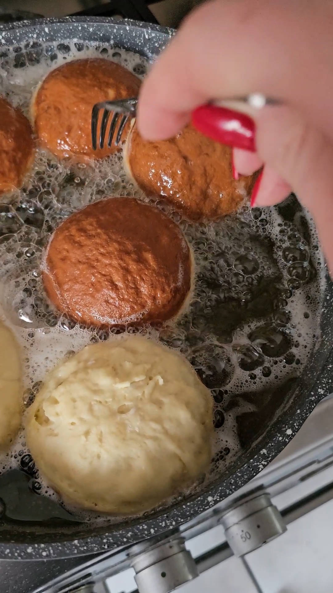 Sprawdziłam ciasto na dwa sposoby. Bez wyrastania – da się. Nie ma tylko charakterystycznej dla pączków, jasnej obrączki, otoczki/ obwódki.