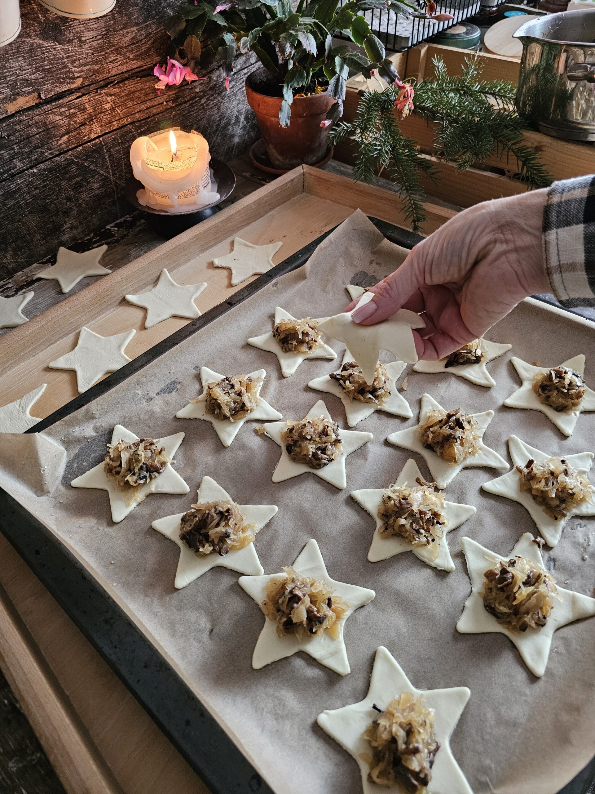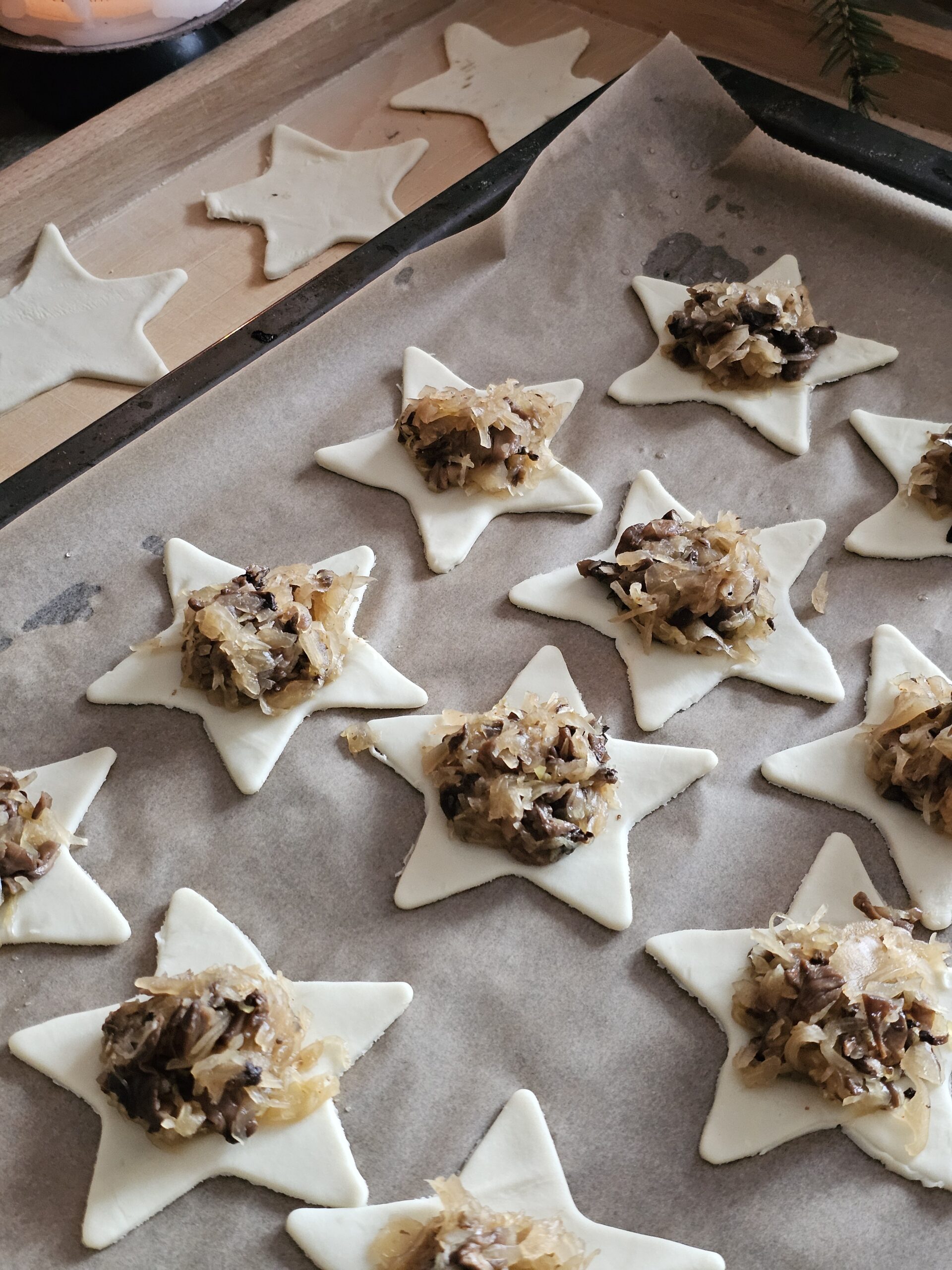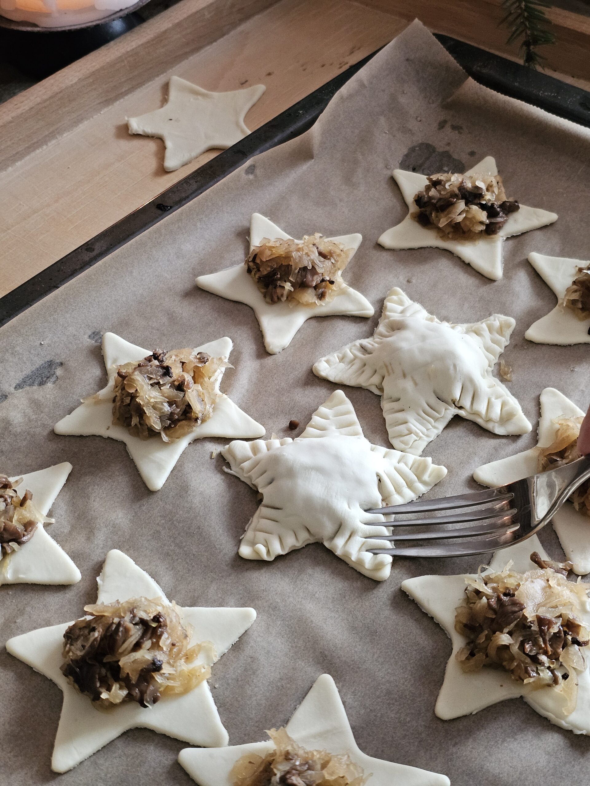 Proste paszteciki z kapustą i grzybami – mocno chrupiące i kruche, idealne do czerwonego barszczu i na sylwestrową przekąskę.