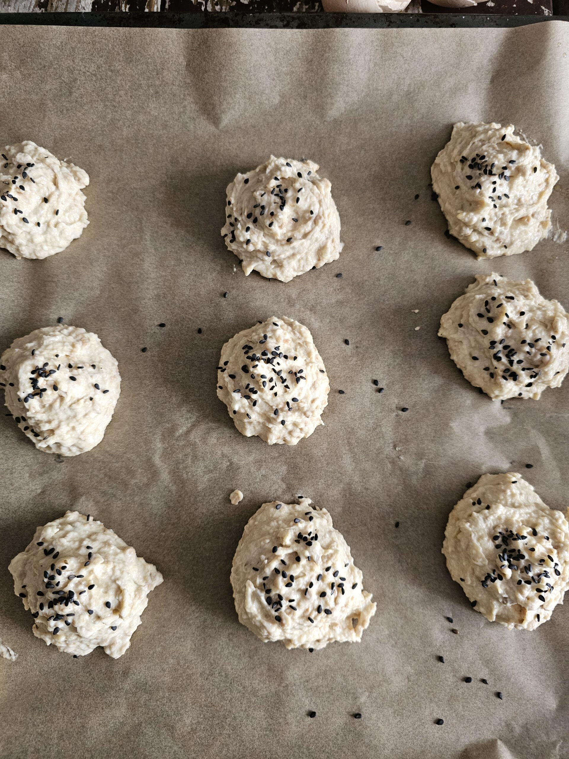 Układać w odstępach na blaszce wyłożonej papierem do pieczenia.